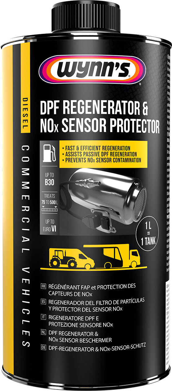 Preparat DPF Regenerator & NOx Sensor Protector marki Wynn's został opracowany w celu oczyszczenia zablokowanych filtrów cząstek stałych i zmniejszenia emisji sadzy we wszystkich silnikach wysokoprężnych. Został również zaprojektowany w celu ochrony, czujnika NOx przed gromadzeniem się sadzy.