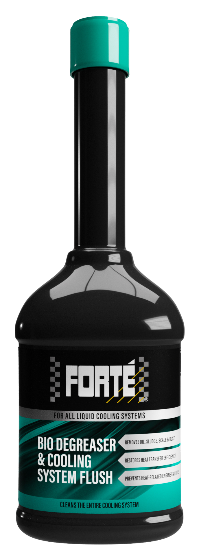 Forté Bio Degreaser and Cooling System Flush to specjalnie opracowany produkt czyszczący, oparty na rozpuszczalnikach i kwasach organicznych, służący do usuwania oleju, szlamu, kamienia i korozji z układu chłodzenia.
